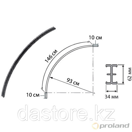 Размеры R: 1500 ; 2300 х 61 х 34,5 mm